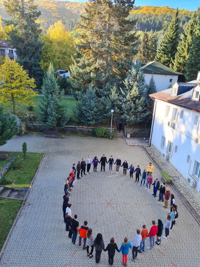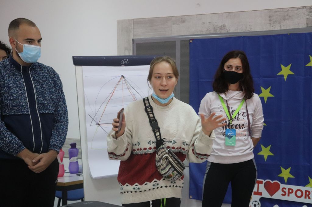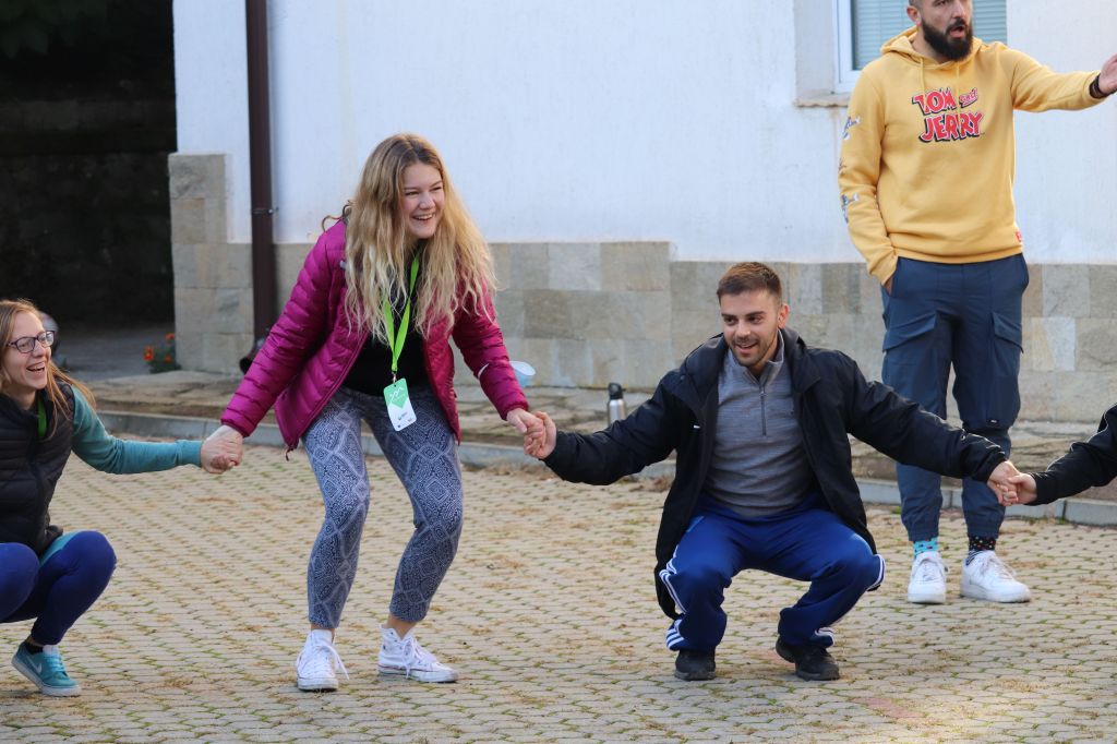 After the afternoon break, the participants continued with the competitive games in the groups they were randomly assigned to after the lunch. They were engaged in three different activities where they had to strengthen the mutual cooperation as a team through improving communication skills. The activities included playing a snake, tic-tac toe, and duels, and the participants had to engage not only physically, but also psychically to develop the winning strategies. The activities were finished by a large discussion about the purpose of these activities. It was observed by the participants that with each activity, the cooperation was getting better.