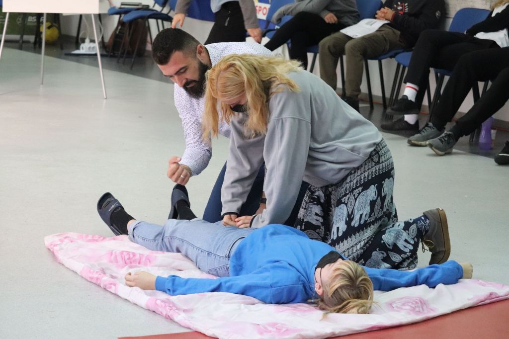 Moreover, onne of the two main activities was the first aid. The trainer provided us with practical and theoretical presentation on how to give the first aid in case of emergency. The participants learned how to cope with emergency in different situations. Among other things they were taught what common things we can use in these kind of situations so that we are able to help injured people in the right manner.